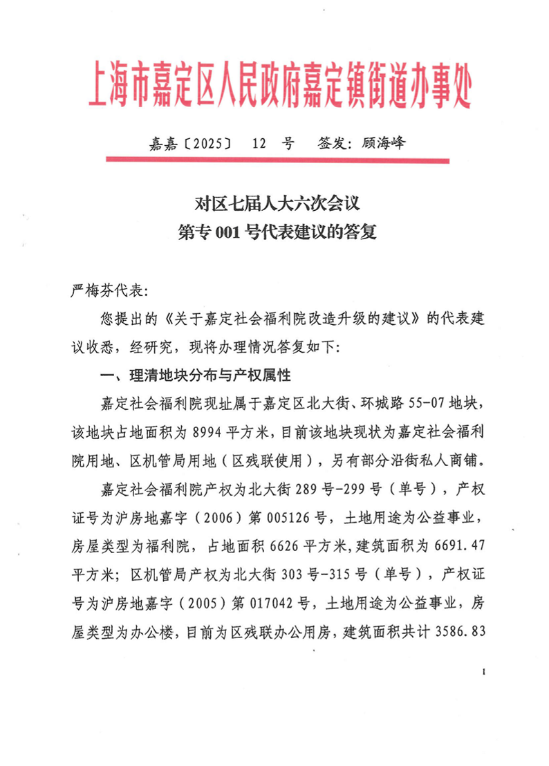 嘉嘉〔2025〕12号对区七届人大六次会议第专001号代表建议的答复